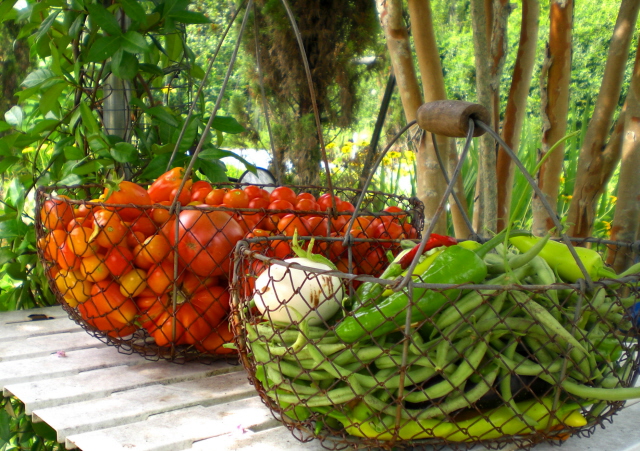 Last year I think I tossed a wreath at the front door and called it done. Even inspired I still lack patience, so for me decorating has to be quick. Killing two birds with one stone, I cut down a couple of cedar trees growing too close to the guest house. Instead of tossing them on the compost pile I stuffed them in the empty concrete pots on either side of the front door, filled the base with boxwood, fluffed the wreaths with cedar, red ribbon and painted gourds from the garden.
